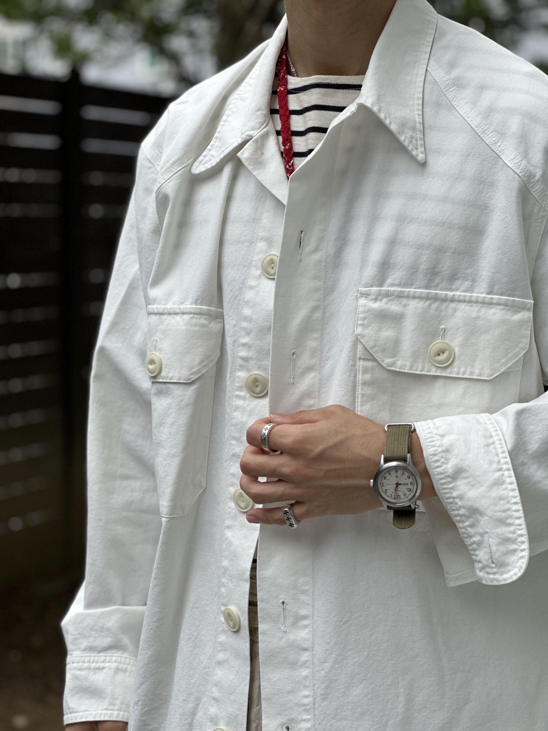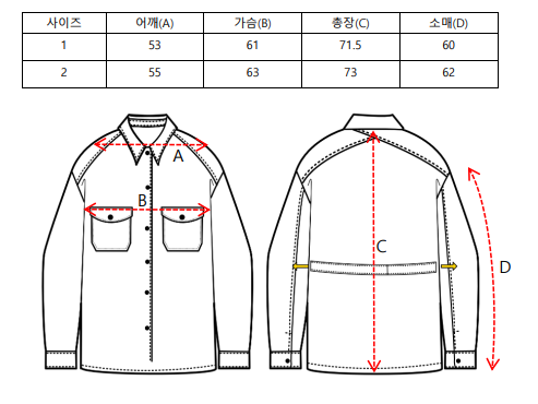 밀티터리 오피서 셔츠의 디자인과 디테일을 베이스로 20수 코튼 트윌로 제작한 셔켓.