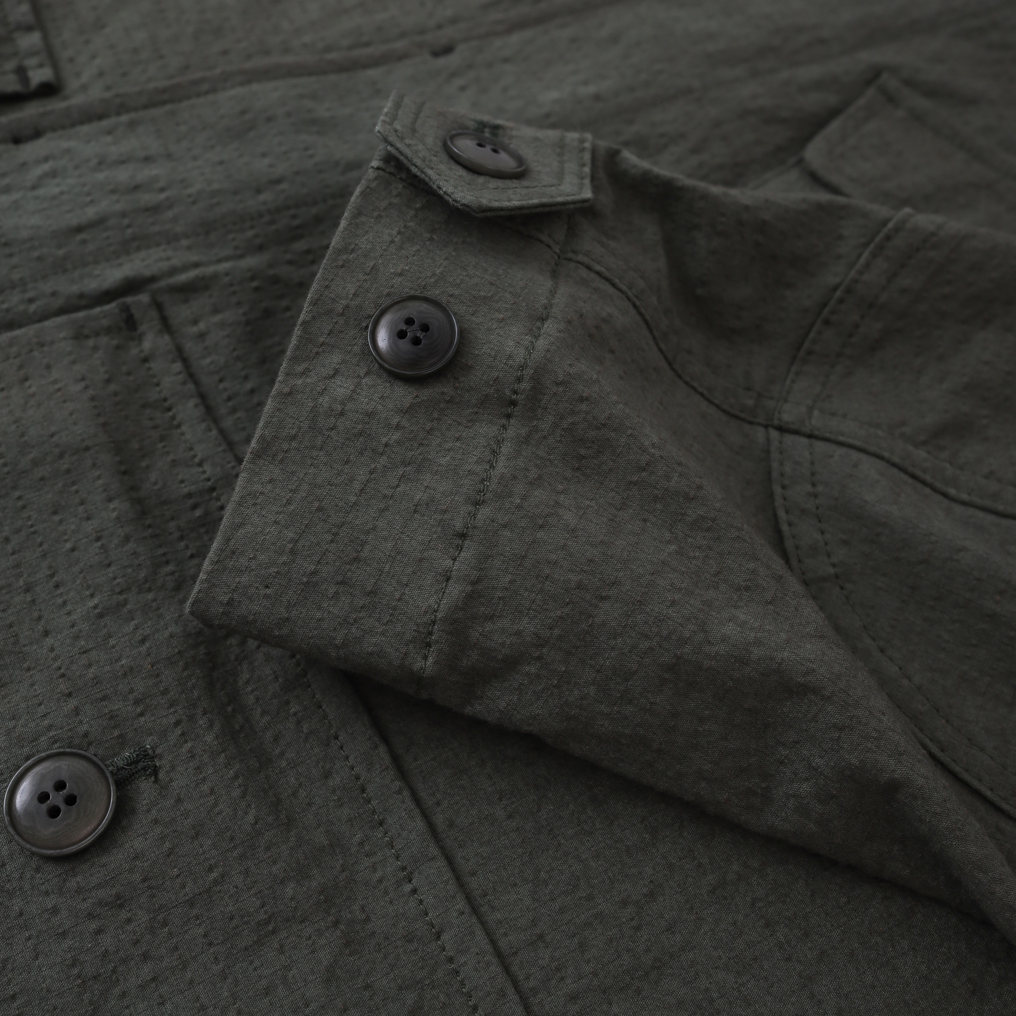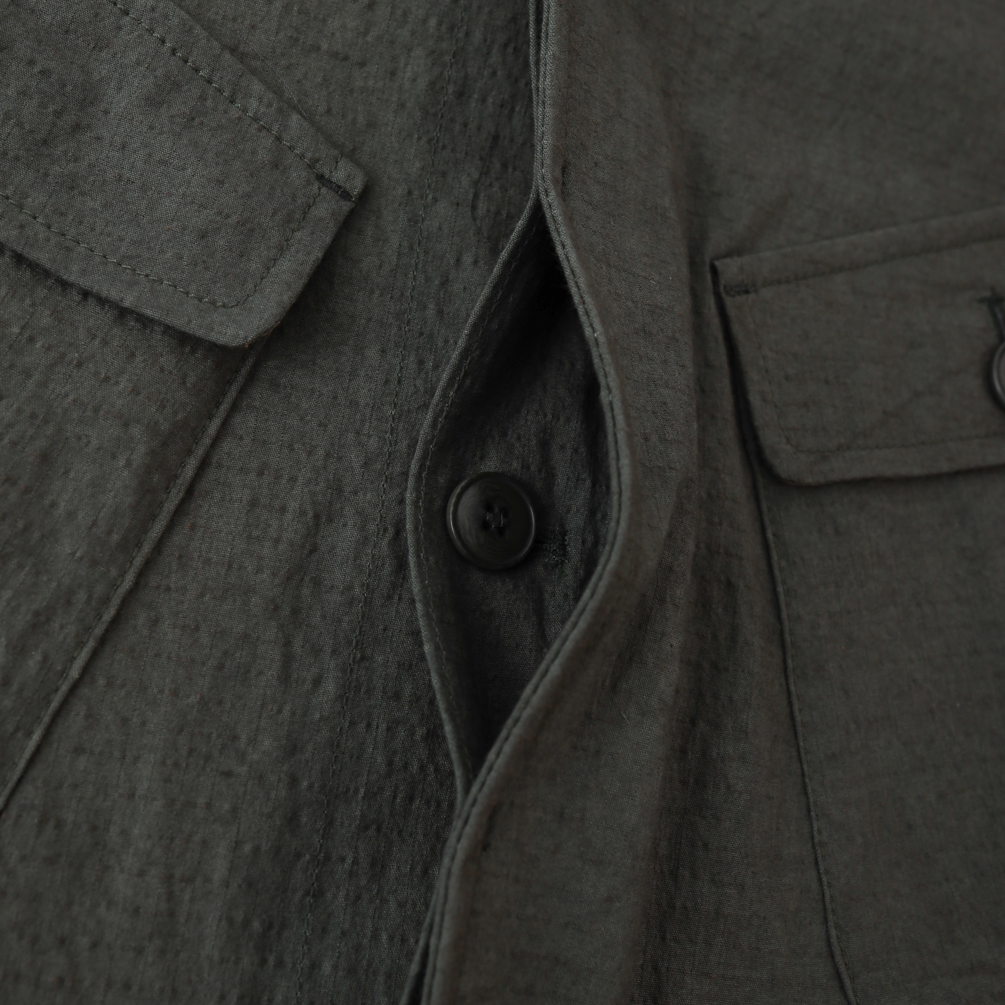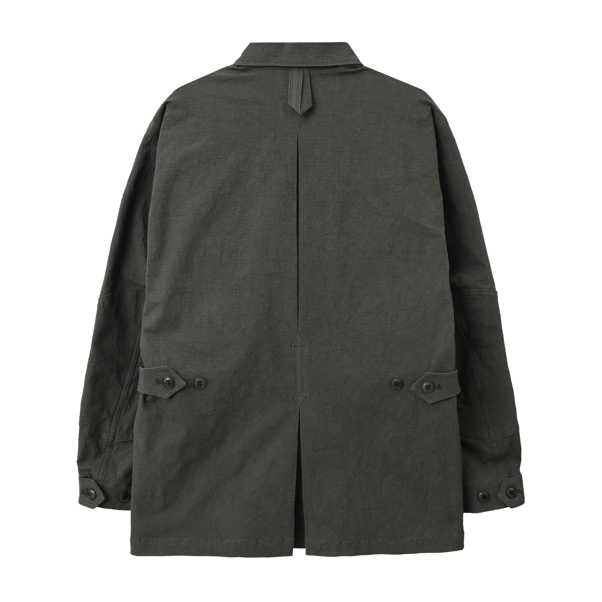 밀리터리 룩에서 빠질 수 없는 정글자켓. 일본 Shibaya 社의 Sunny Dry 시리즈의 280g/㎡ Cotton Dyed Ripstop을 사용하여 현대적인 핏으로 재해석.