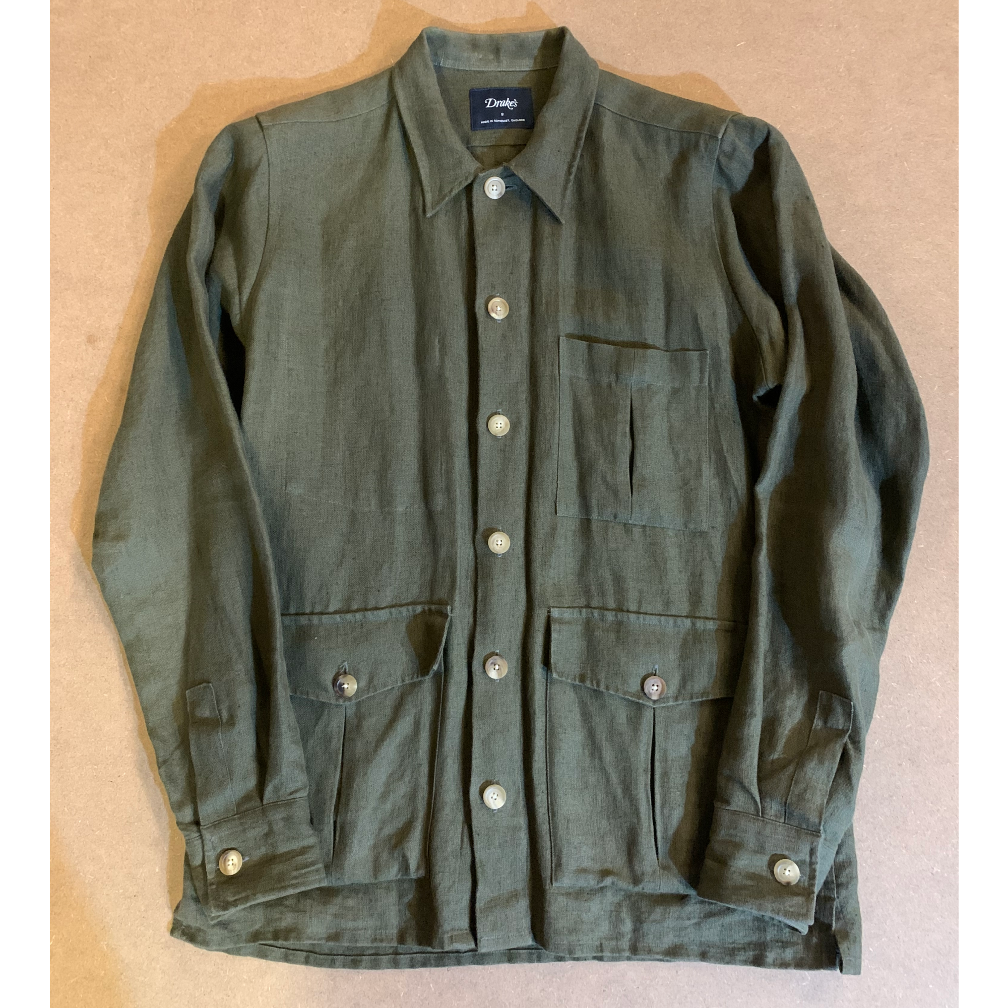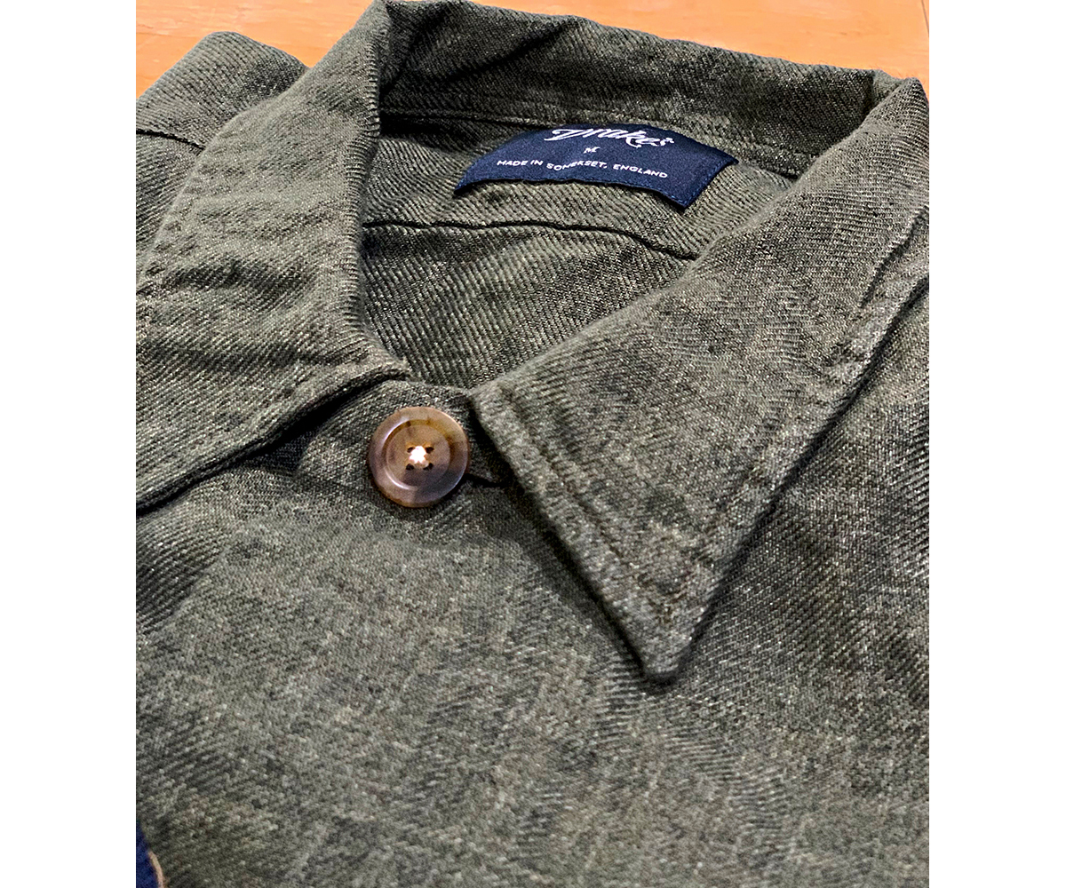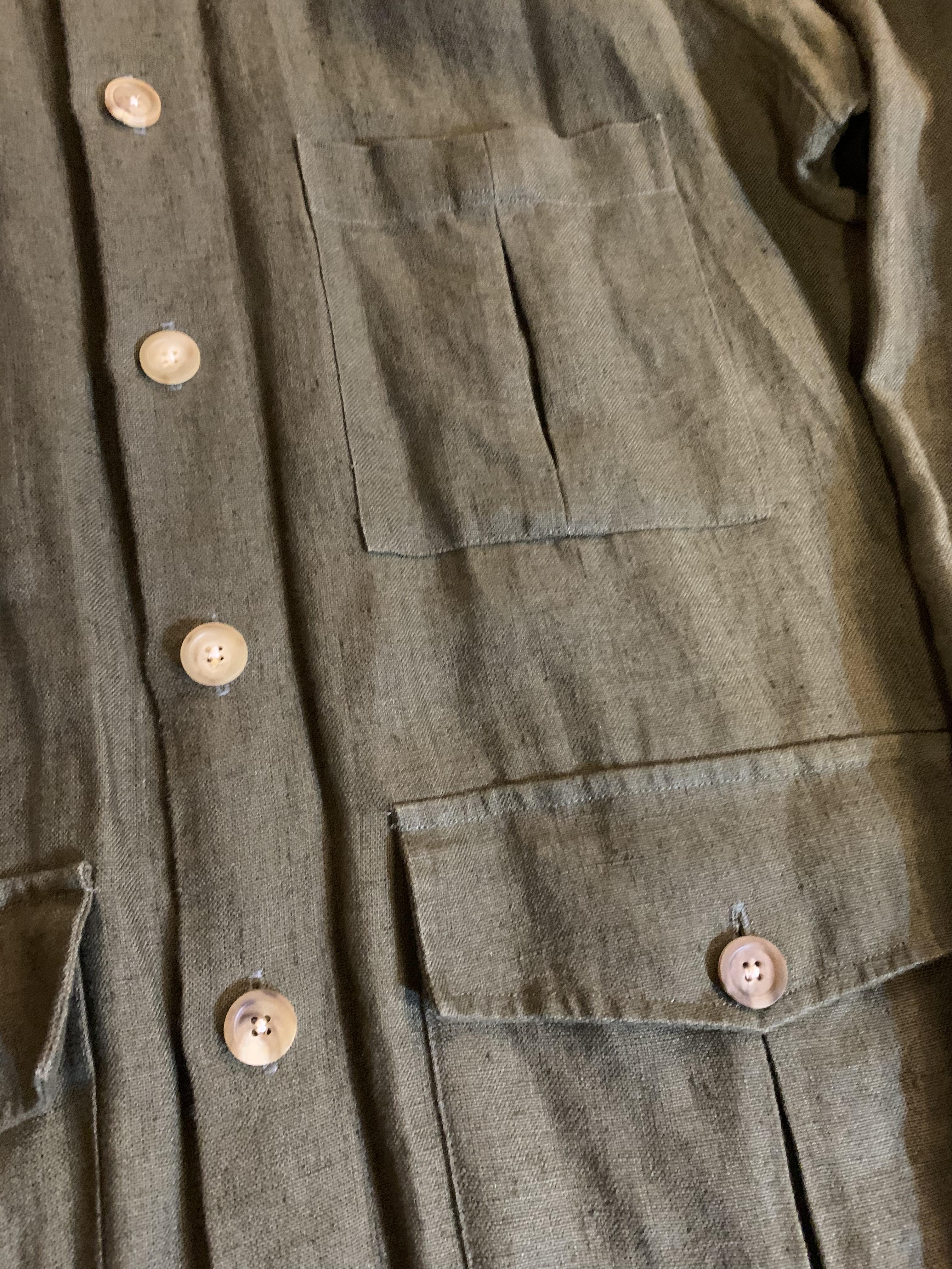 4포켓 재킷을 기반으로, 오른쪽 가슴 포켓을 제거한 드레익스 특유의 편안하고 장난기 어린 느낌이 돋보입니다. 포켓이 있던 자리의 흔적이 남아 있어 약간 빈티지한 느낌과 미국적인 풍미가 있습니다. 약간 느슨한 핏과 리넨 소재가 여름에도 잘 어울립니다.