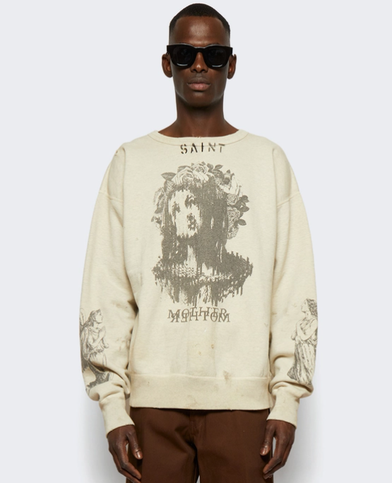 [SAINT MXXXXXX] 세인트미카엘 Denim Tears Mother Sweater Grey 데님티어스 그레이 크루넥_L
