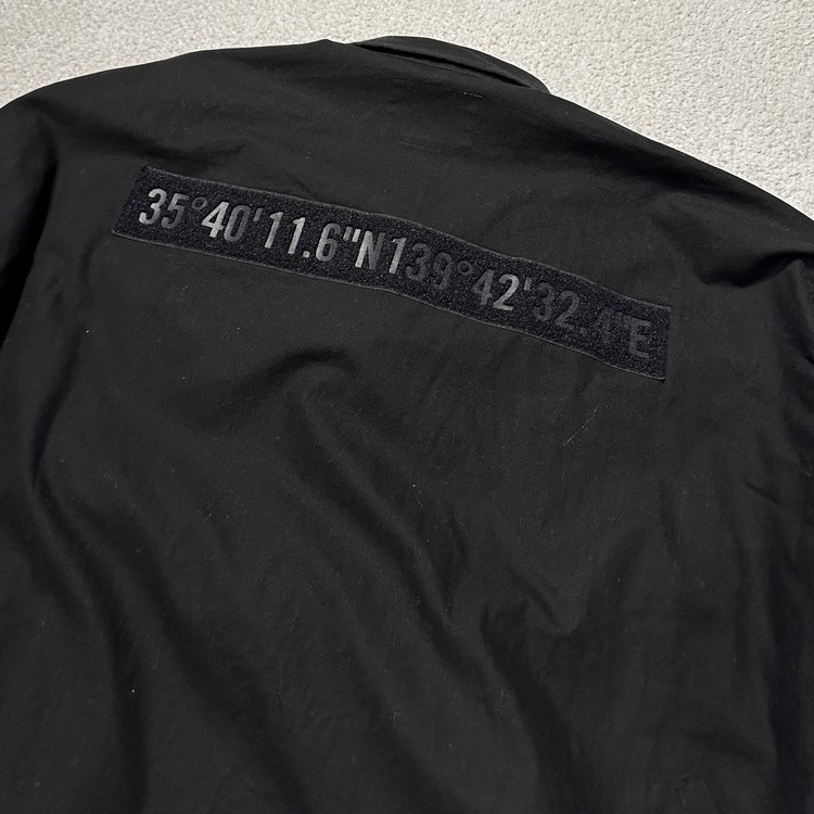 자켓과 구성은 거의 흡사하지만 셔츠 베이스의 외겹 그리고 지퍼가 아닌 버튼으로 제작되었습니다. 또한 촘촘하게 직물된 립스탑 소재의 외형이지만 딱딱하지 않고 부드러운 질감으로 처리하였습니다. 등판에는 벨크로 소재로 GPS 각인이처리되어 있습니다.